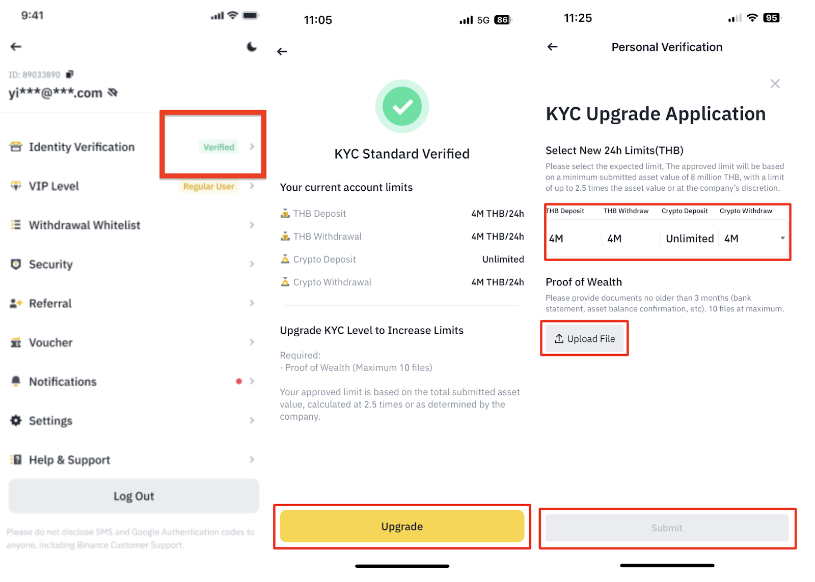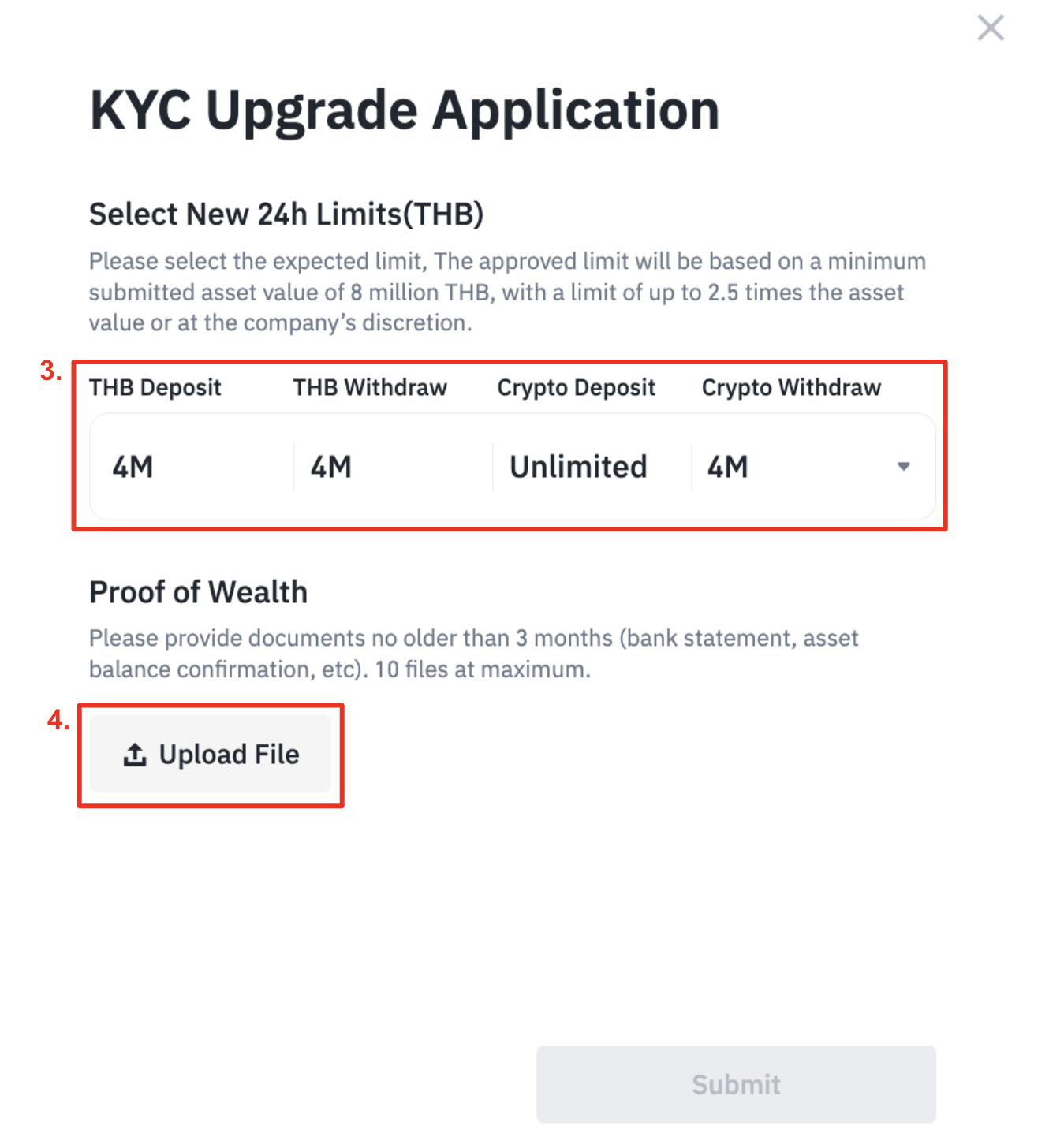 KYC Upgrade: This level increases the deposit and withdrawal limit up to 500 million THB