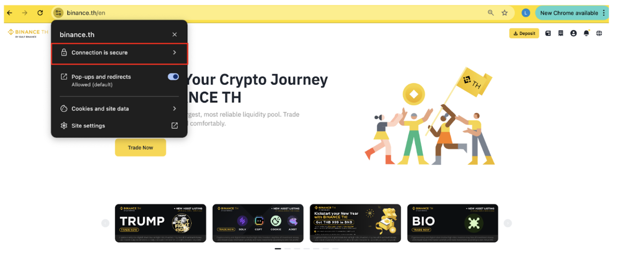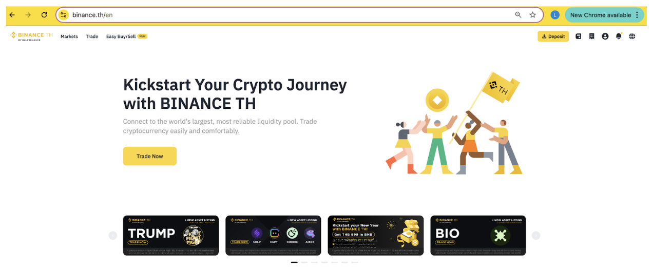 The safest way to login to Binance TH is through the website https://www.binance.th