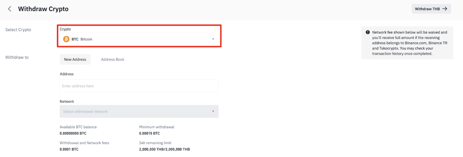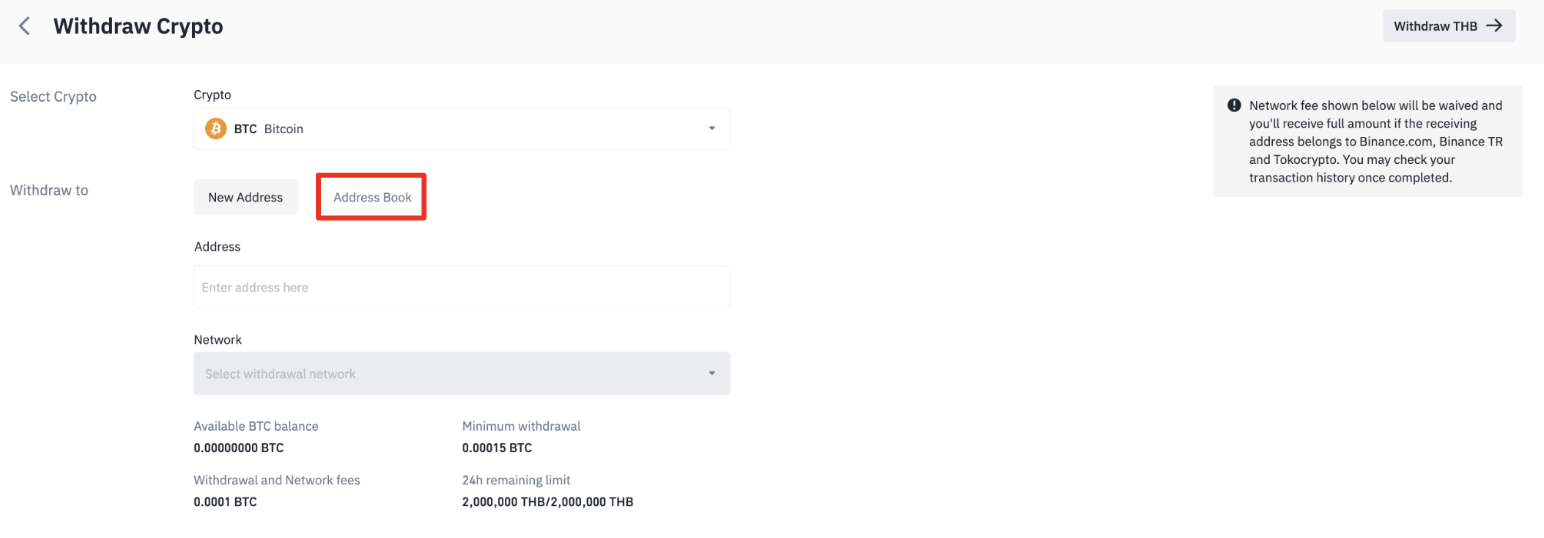 Note: To add a new withdrawal address to your address book, check out the Frequently Asked Question section of this article, Click. https://www.binance.th/en/faq/crypto-deposit-%7C-withdrawal/aa61108a2ea64b3e83ccee4459a16c31