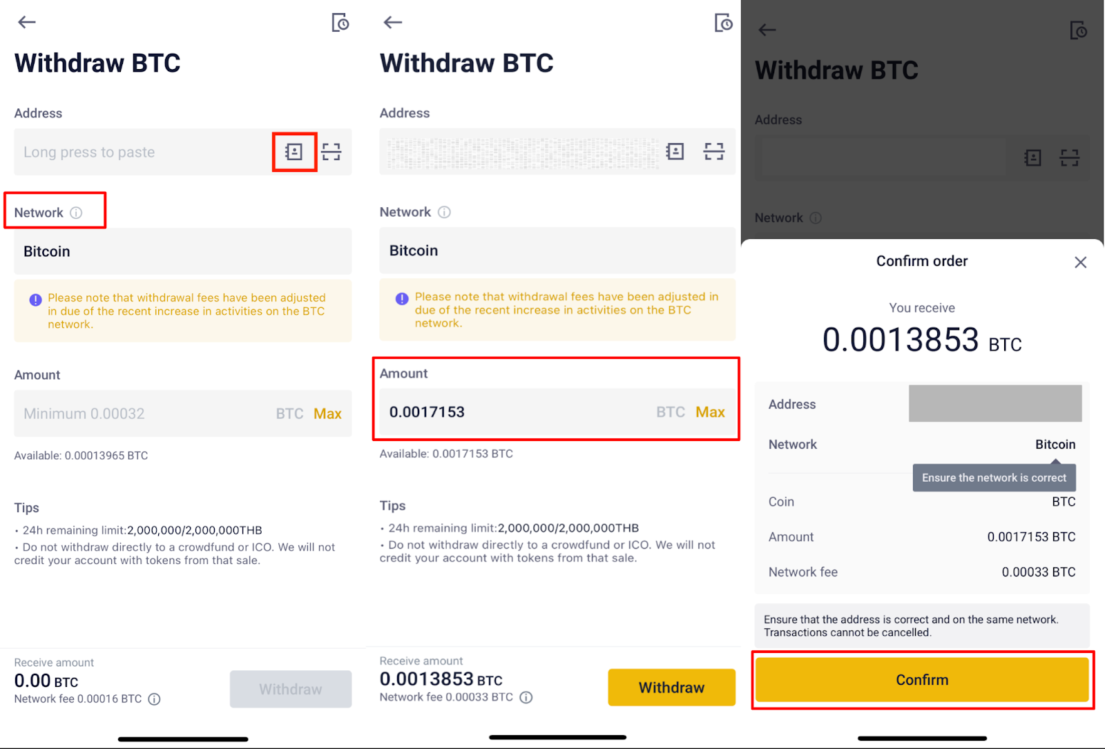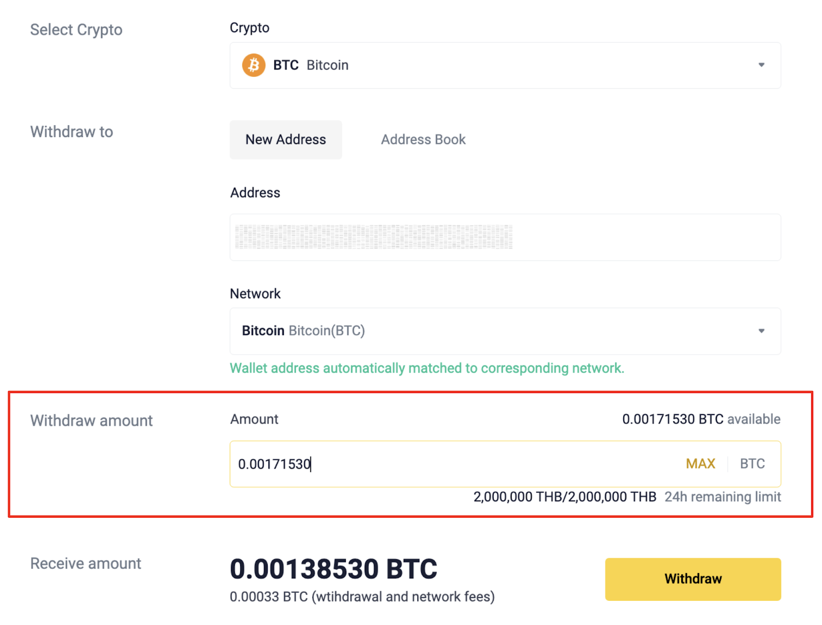 Note: To add a new withdrawal address to your address book, check out the Frequently Asked Question section of this article, Click.