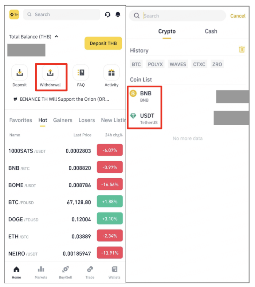 How do I withdraw Crypto on BINANCE TH Website and Application?