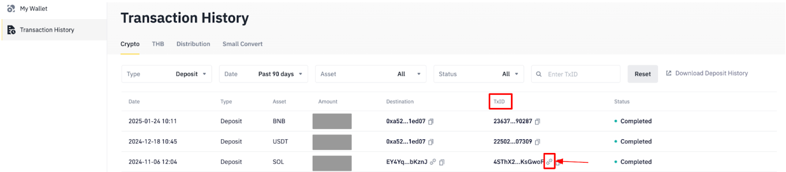 Note: When you contact Binance TH Support for issues regarding deposit or withdrawal, you can provide the TxID of the transaction to our CS team so we can better assist you.