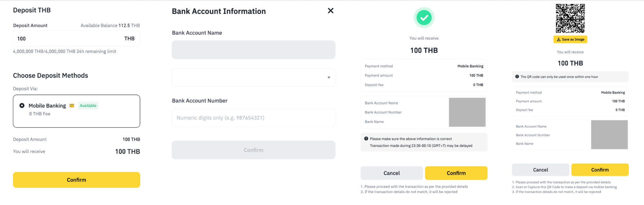 2. If you have not previously made a deposit THB using the Mobile Banking (QR code) method before, you are required to initiate deposit via QR code using the designated bank account in order to register it in the system.