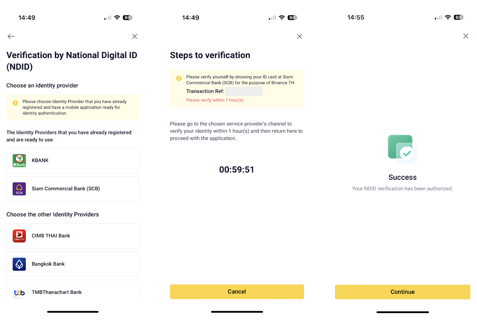 Note: Please process within 1 hour with the NDID service on mobile banking and 24 hours with the NDID service by Dip Chip verification at AIS or Telewiz Shop