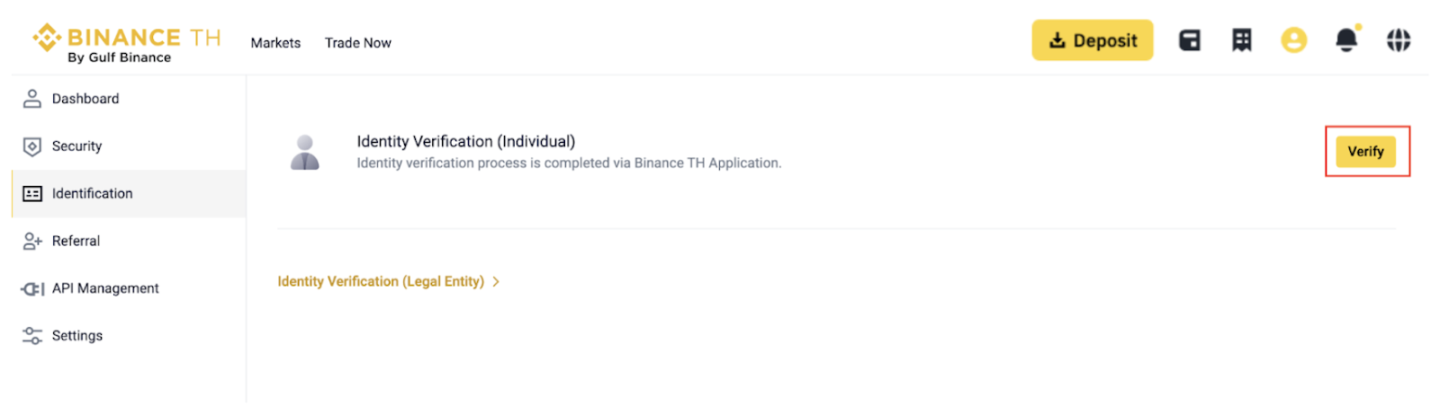 Log in to your BINANCE TH account and click [Profile] - [Identification]