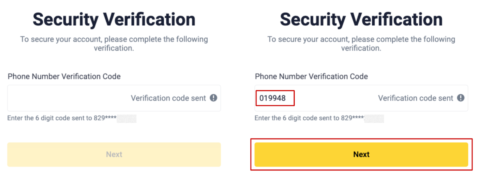 4. Enter a verification code in the email or phone number you entered in the previous step. Then, click [Next].