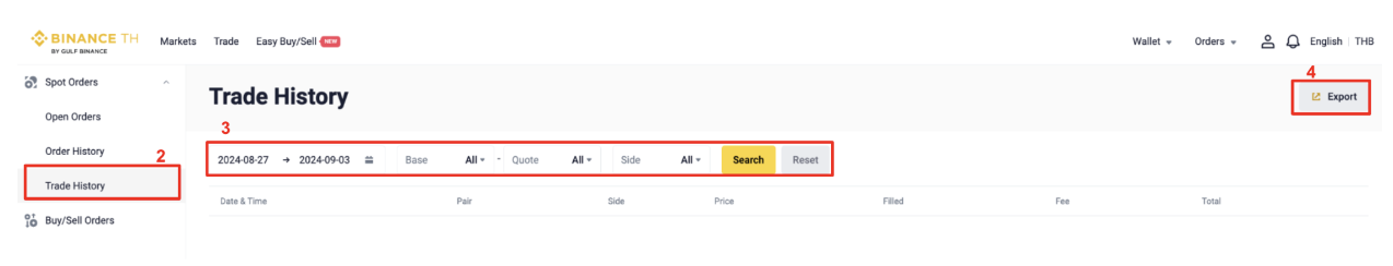1. Log in to your Binance TH account and go to [Orders]-[Spot Orders].