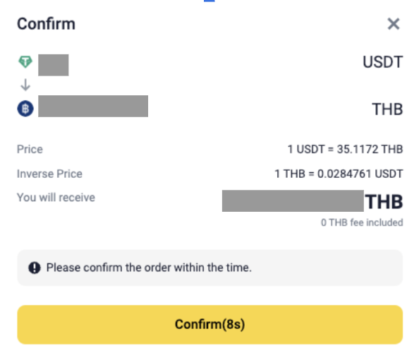 You have 8 seconds to confirm your order. If you do not confirm within the specified time, you will need to refresh the prices to proceed.