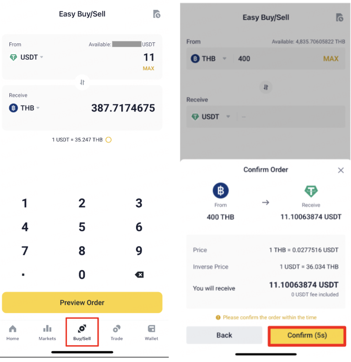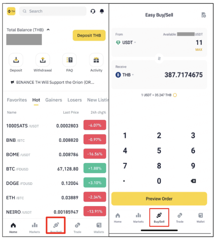 Log in to your Binance TH account via Website or Application, then navigate to the [Easy Buy/Sell] section from the [Home] page.