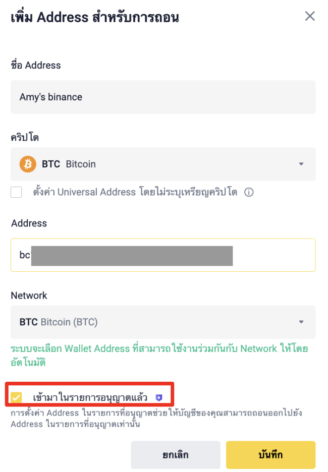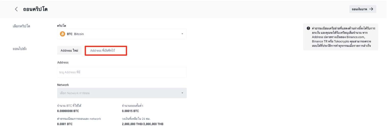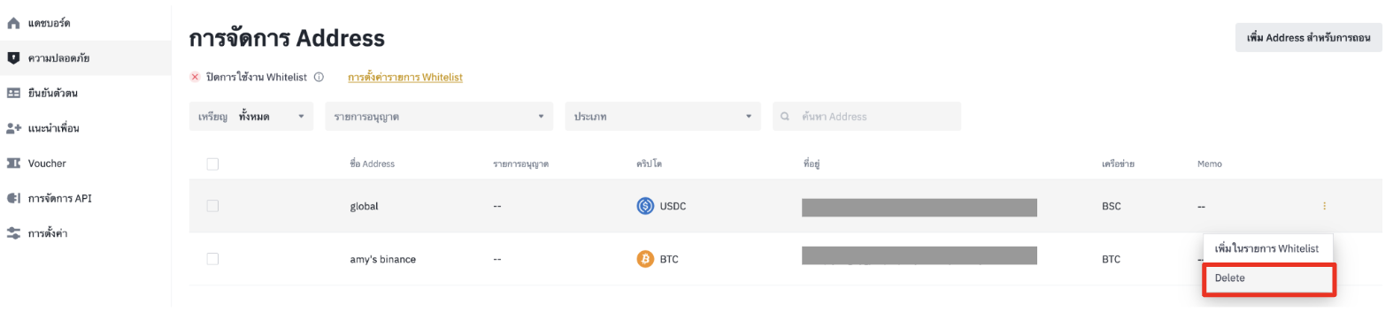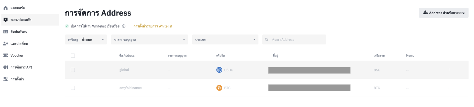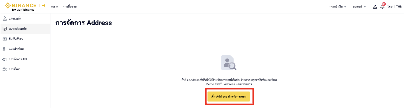 วิธีบันทึกที่อยู่สำหรับการถอนสินทรัพย์บน BINANCE TH (Whitelist Address)