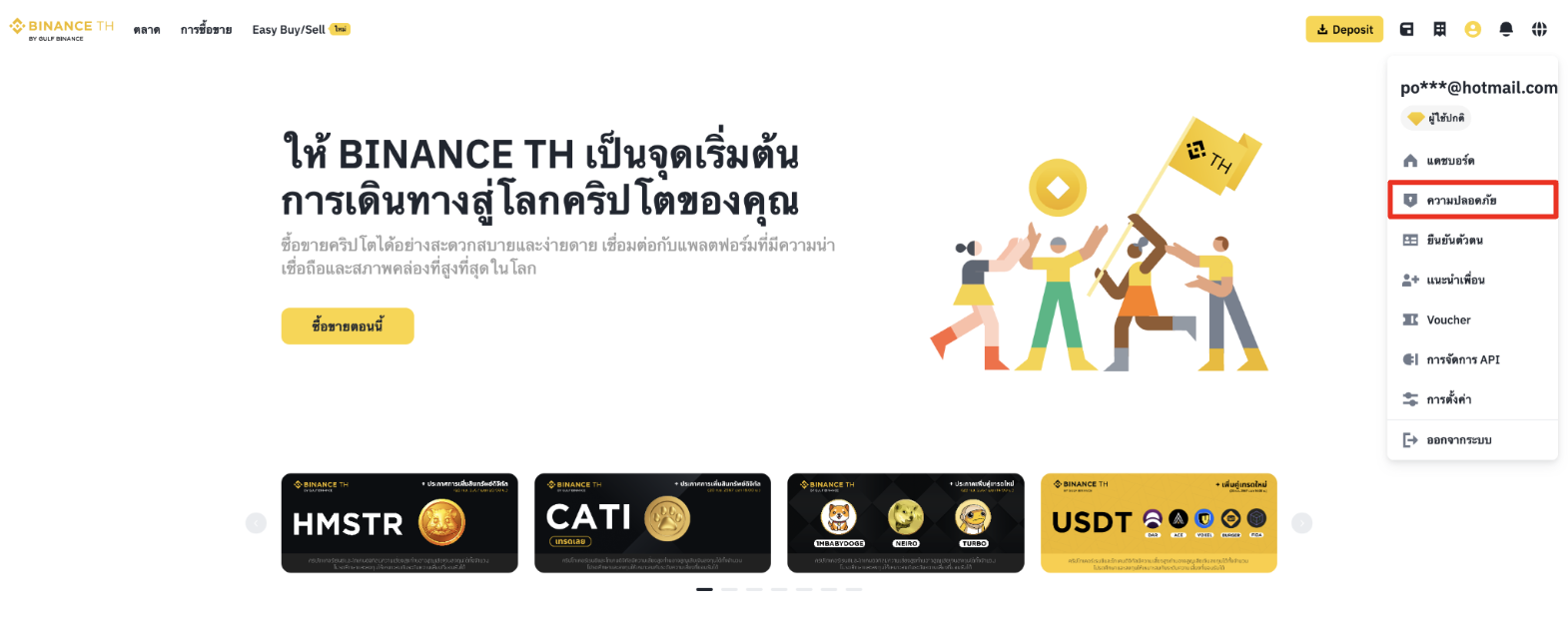 1. เข้าสู่ระบบบัญชี BINANCE TH ของคุณแล้วไปที่ [โปรไฟล์] - [ความปลอดภัย]