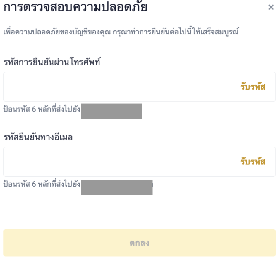 6. กรอก OTP และรหัสยืนยันอีเมลเพื่อยืนยันคำขอของคุณ และที่อยู่จะถูกเพิ่มไปยัง whitelist สำหรับการถอนของคุณ