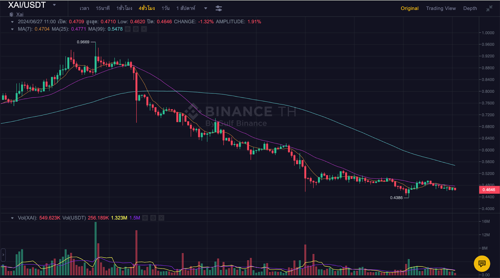 ปัจจุบัน Xai มี Market cap 128 ล้านดอลลาร์ ราคาปัจจุบันอยู่ที่ 0.4625 USDT และมี FDV 1.16 พันล้านดอลลาร์ (ข้อมูลจาก coinmarketcap (https://bit.ly/3y6vwGv) ณ วันที่ 14 พฤษภาคม 2024)