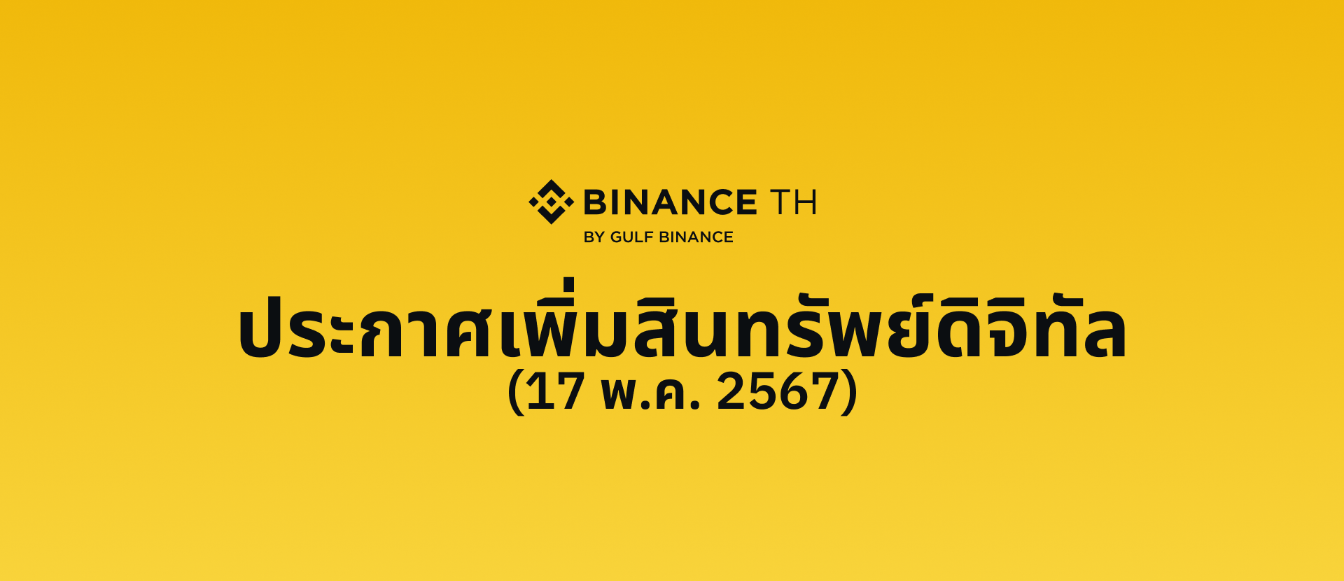 Binance TH by Gulf Binance มีความยินดีจะแจ้งให้ทราบว่า เราจะดำเนินการเพิ่มสินทรัพย์ดิจิทัลดังต่อไปนี้ สำหรับการซื้อขายของบริการนายหน้าซื้อขายสินทรัพย์ดิจิทัล