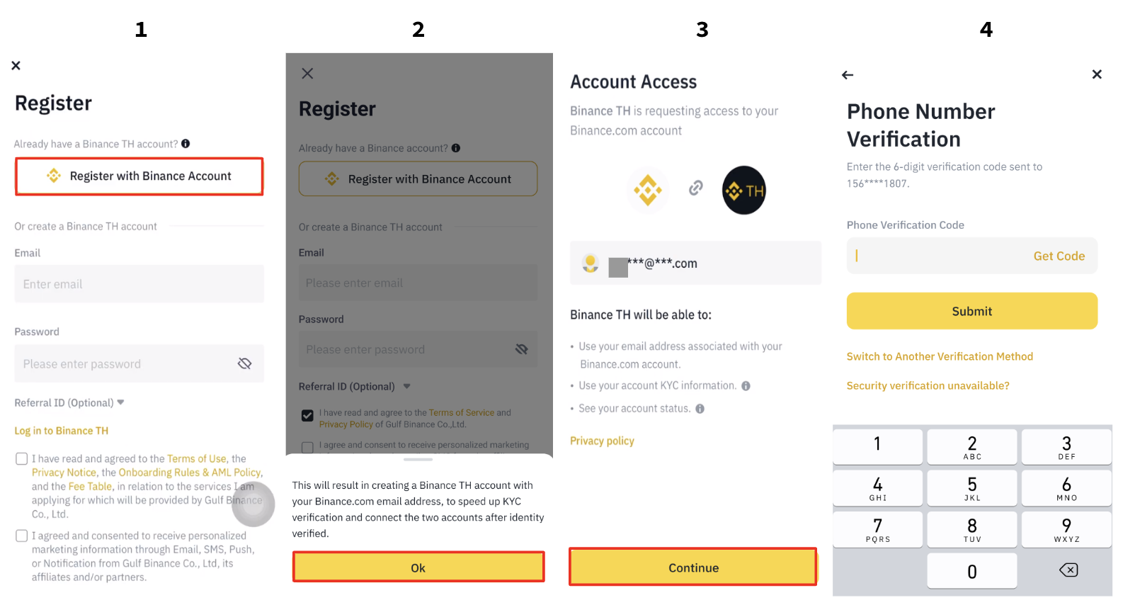 วิธีลงทะเบียนบัญชี BINANCE TH ด้วยตัวเลือก “ลงทะเบียนด้วยบัญชี Binance”