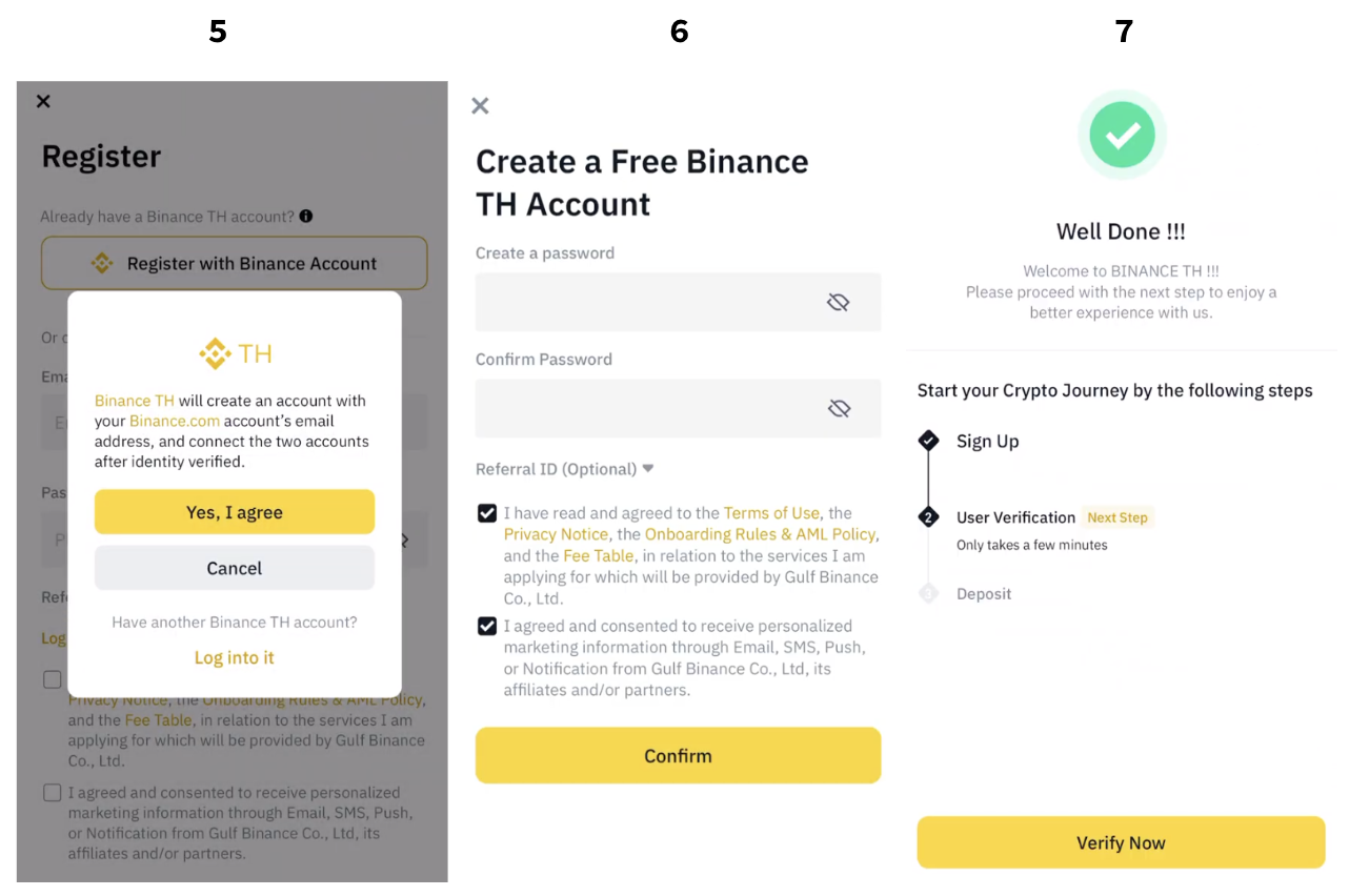 หมายเหตุ: หากคุณยังไม่ได้ยืนยันตัวตน คุณจะถูกส่งต่อไปยังการยืนยันตัวตนบน Binance.com หรือ BINANCE TH ขึ้นอยู่กับบัญชีของคุณ และต้องเป็นบุคคลเดียวกันเท่านั้นที่จะเชื่อมโยงได้