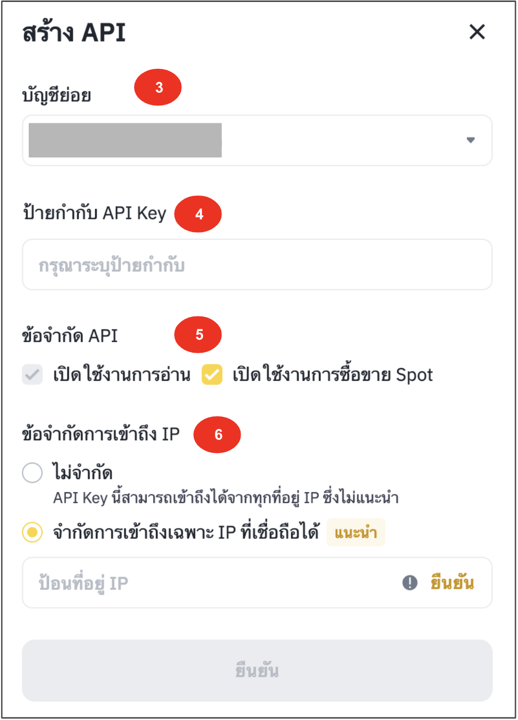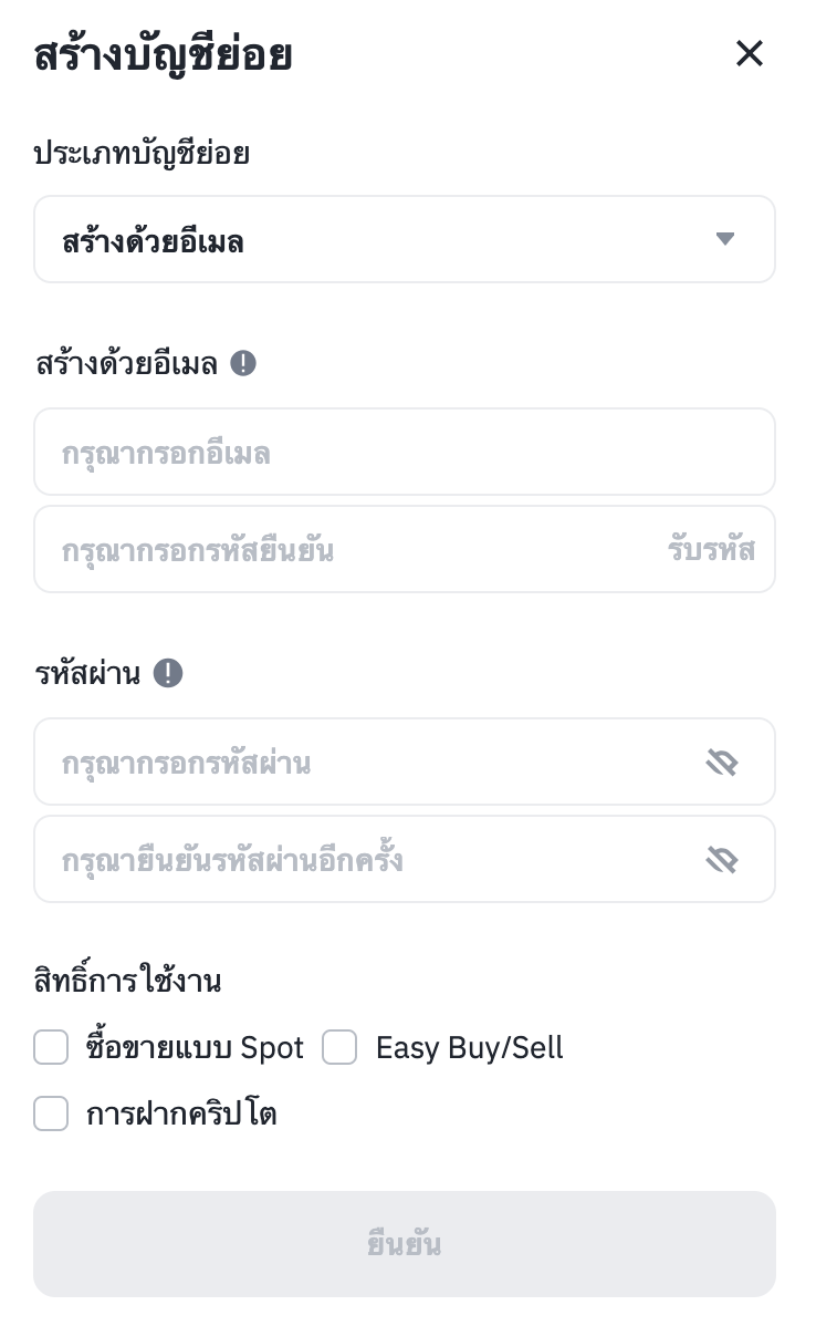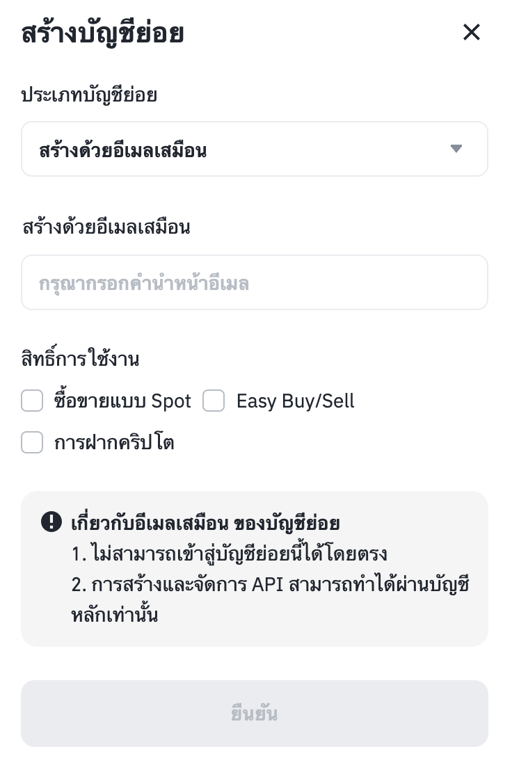หมายเหตุ: กรุณายกเลิกคำสั่งซื้อขายบนสปอตเทรดก่อนดำเนินการสร้างบัญชีย่อยครั้งแรก