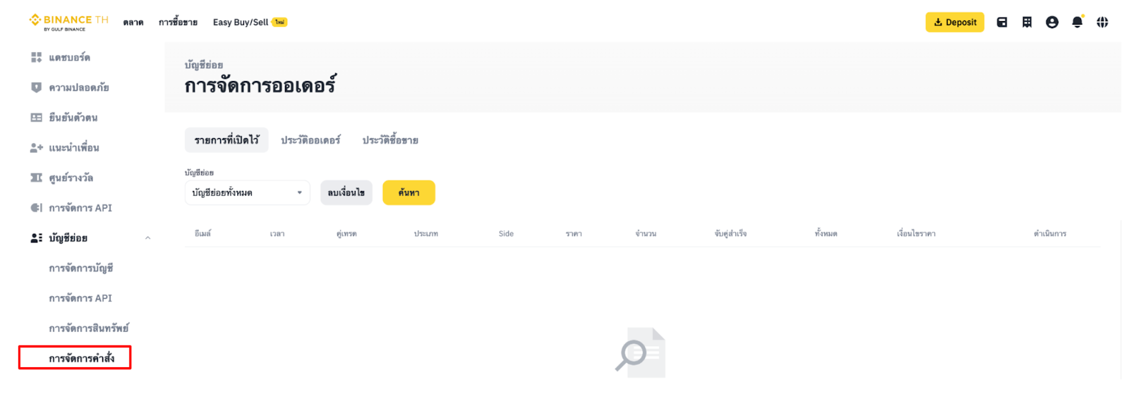 1.1 ไปที่ [การจัดการคำสั่ง] - [ประวัติซื้อขาย]