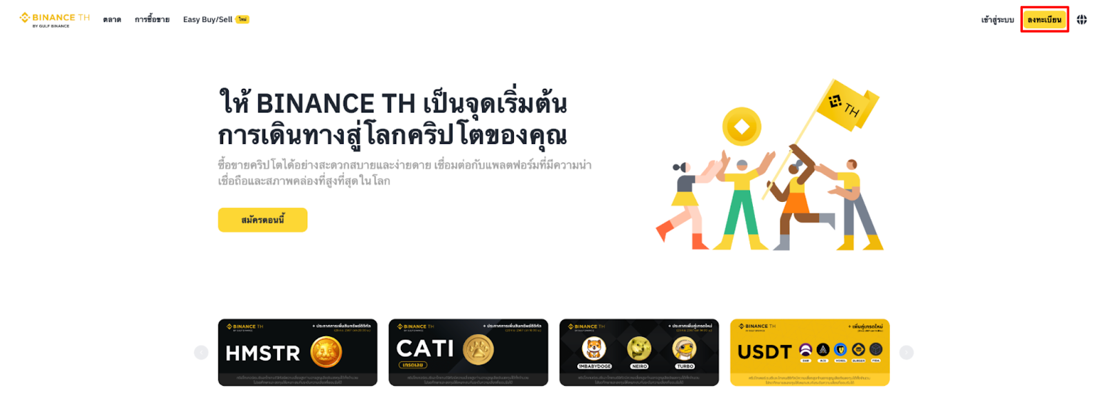 1. ไปที่เว็บไซต์ Binance TH และคลิก [ลงทะเบียน]