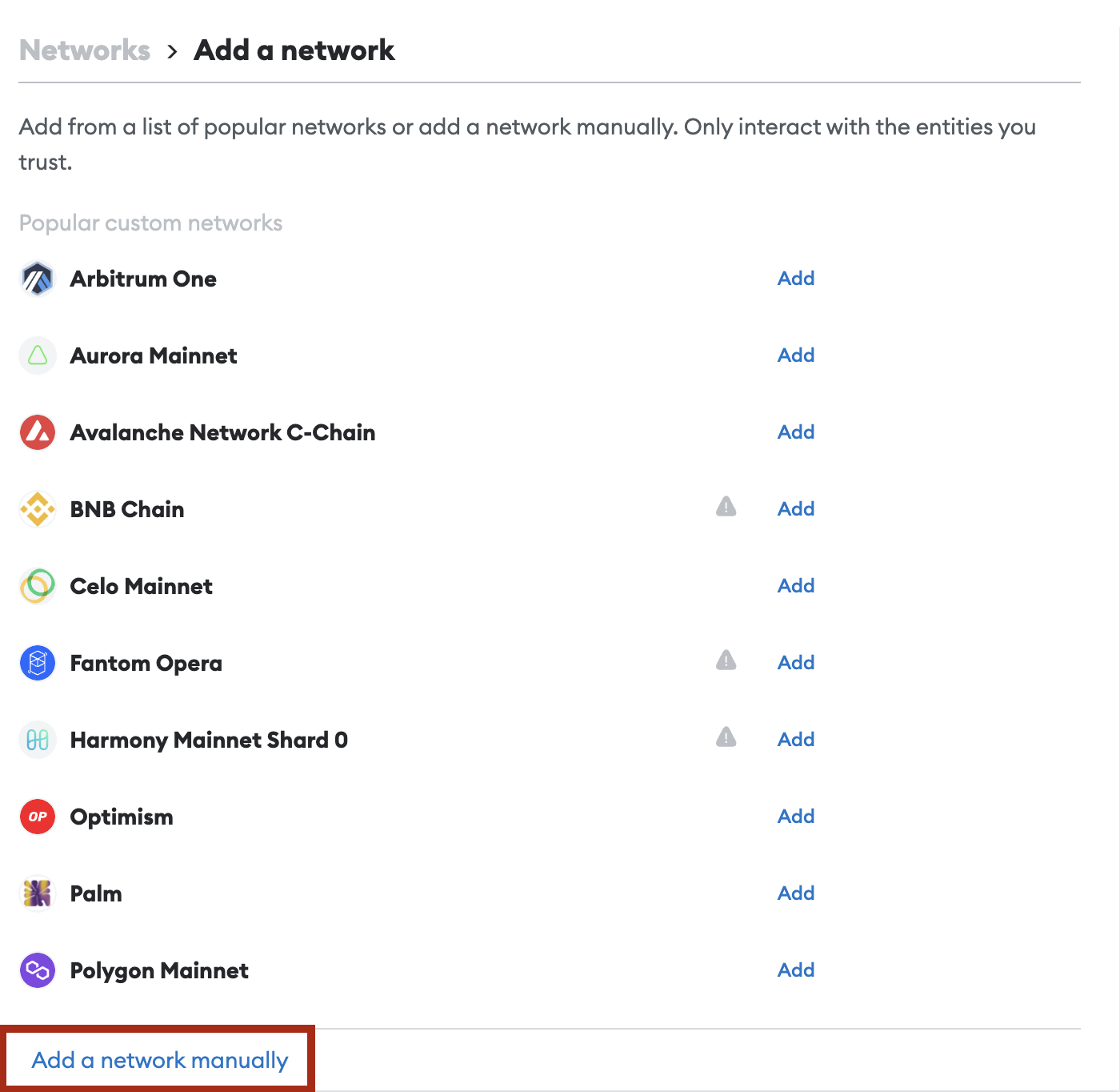 3. เลือกปุ่มเพิ่มเครือข่าย