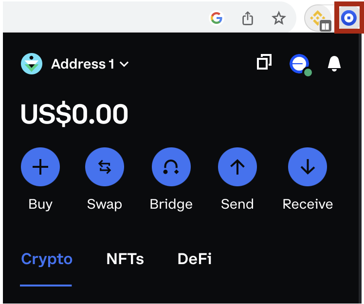 1.1. เปิดใช้งาน Browser extension ของ Coinbase Wallet และลงชื่อเข้าใช้งาน