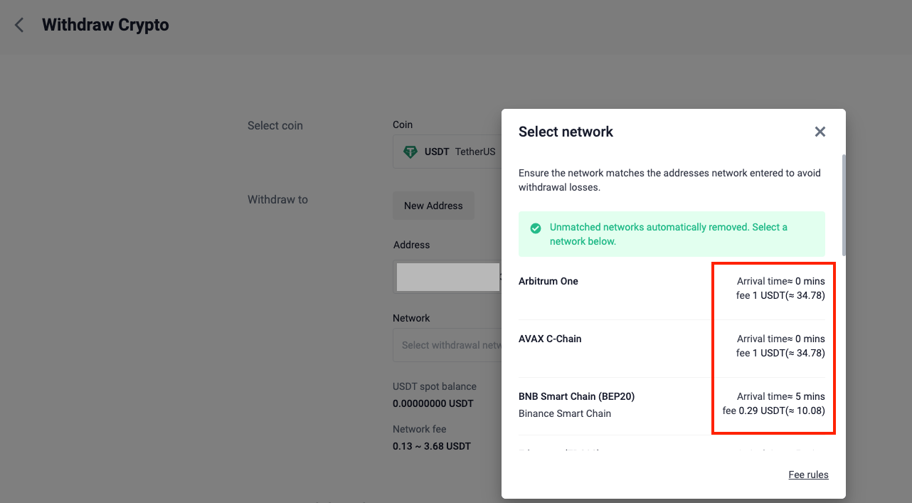 โปรดทราบว่าจำนวนการถอนขั้นต่ำและค่าธรรมเนียมการทำธุรกรรมอาจมีการเปลี่ยนแปลงขึ้นอยู่กับเครือข่ายที่คุณใช้