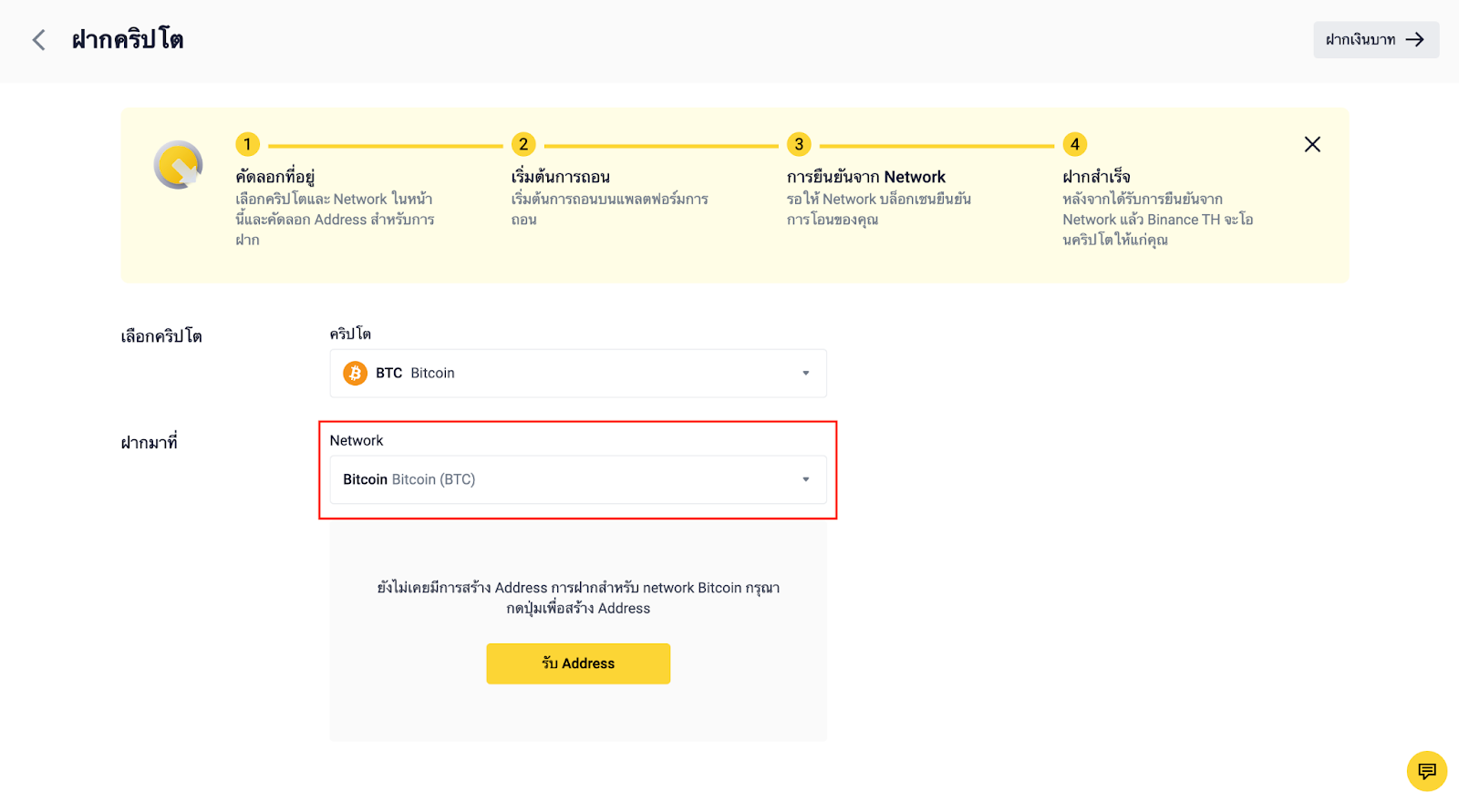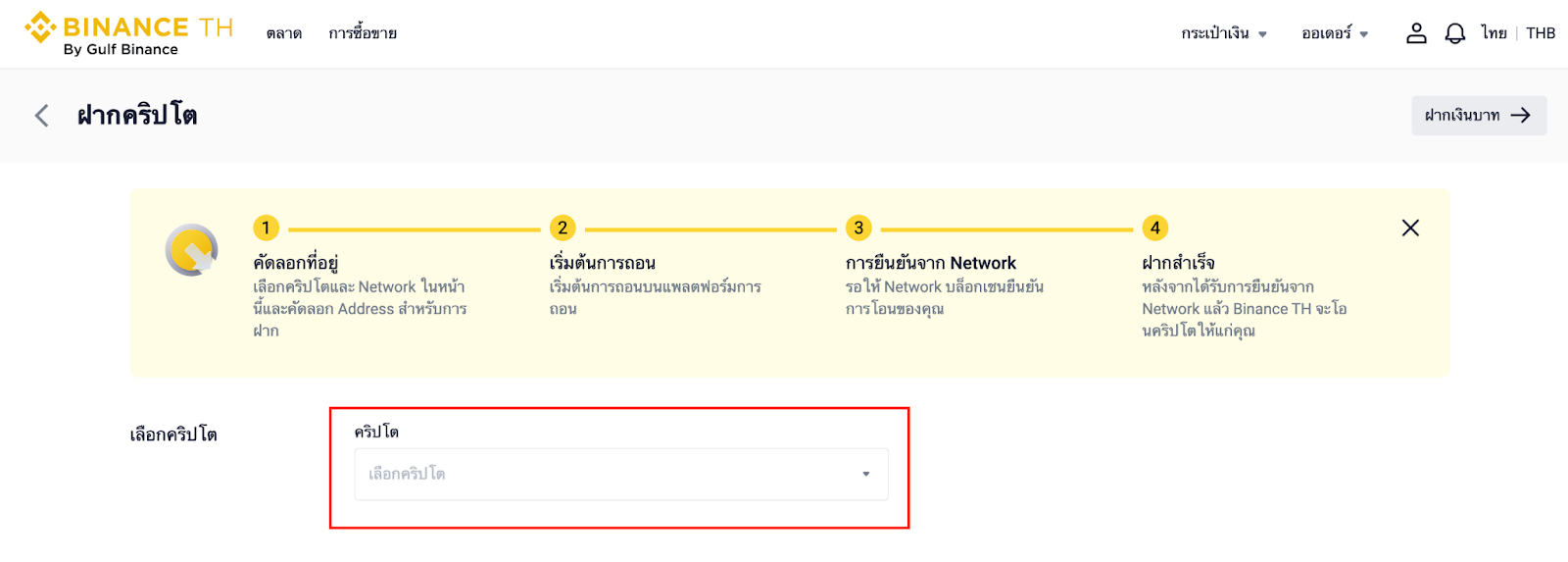 วิธีฝากคริปโตเข้าบัญชี BINANCE TH