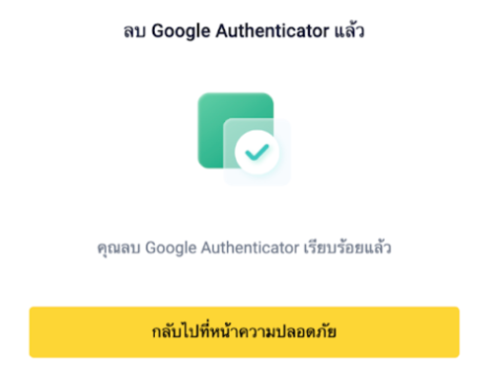 4. ปิดการใช้งาน Google Authentication เรียบร้อยแล้ว ทั้งนี้ คุณจำเป็นต้องใช้การยืนยันตัวตนอย่างน้อยสองวิธี เพื่อถอนสินทรัพย์หรือทำธุรกรรมอื่น ๆ หากคุณต้องการเปิดใช้งาน Google Authentication อีกครั้ง โปรดดูขั้นตอนการเปิดใช้งานได้ที่นี่ คลิก