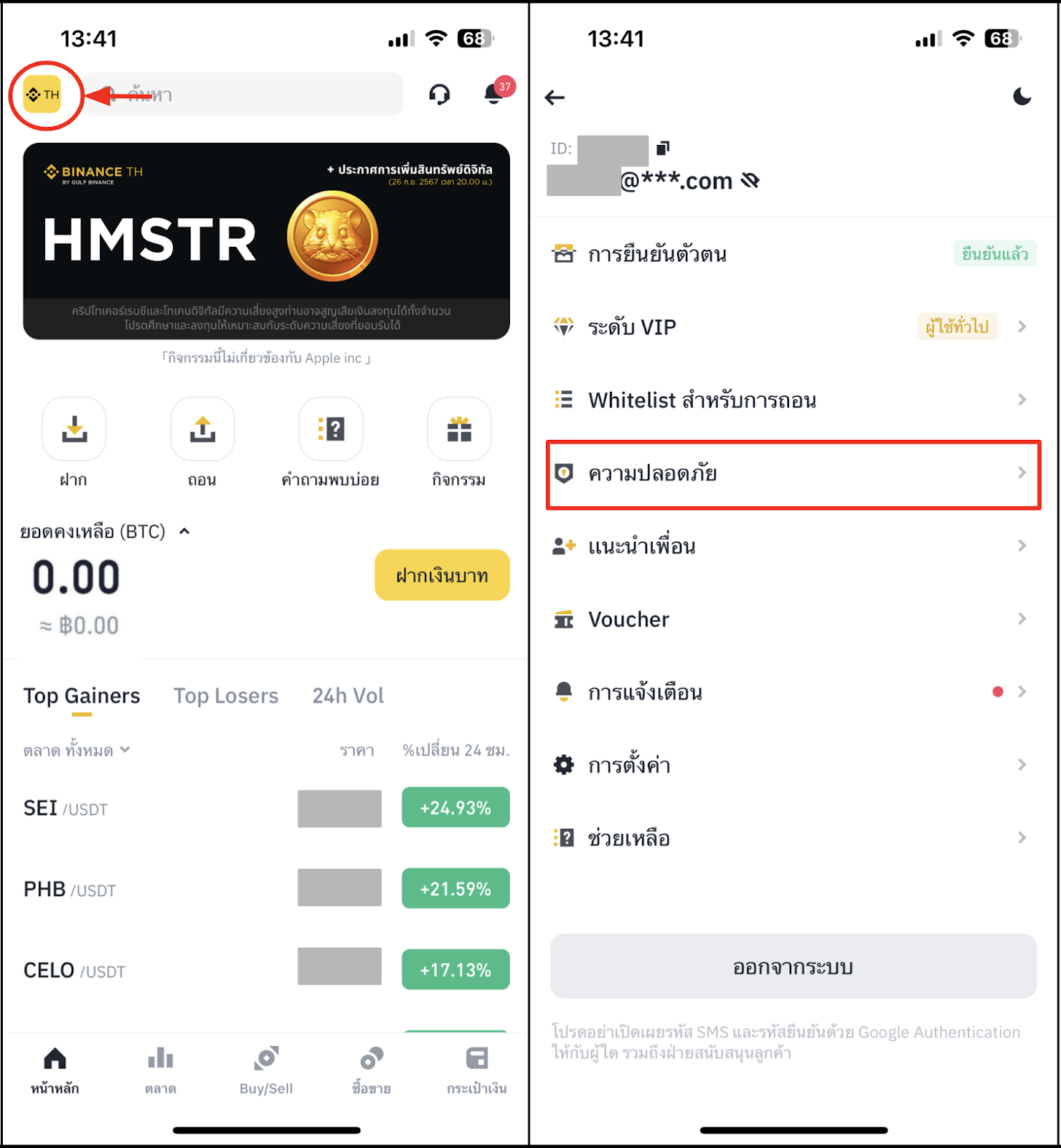 1. คลิกที่ไอคอน [โปรไฟล์] > [ความปลอดภัย]