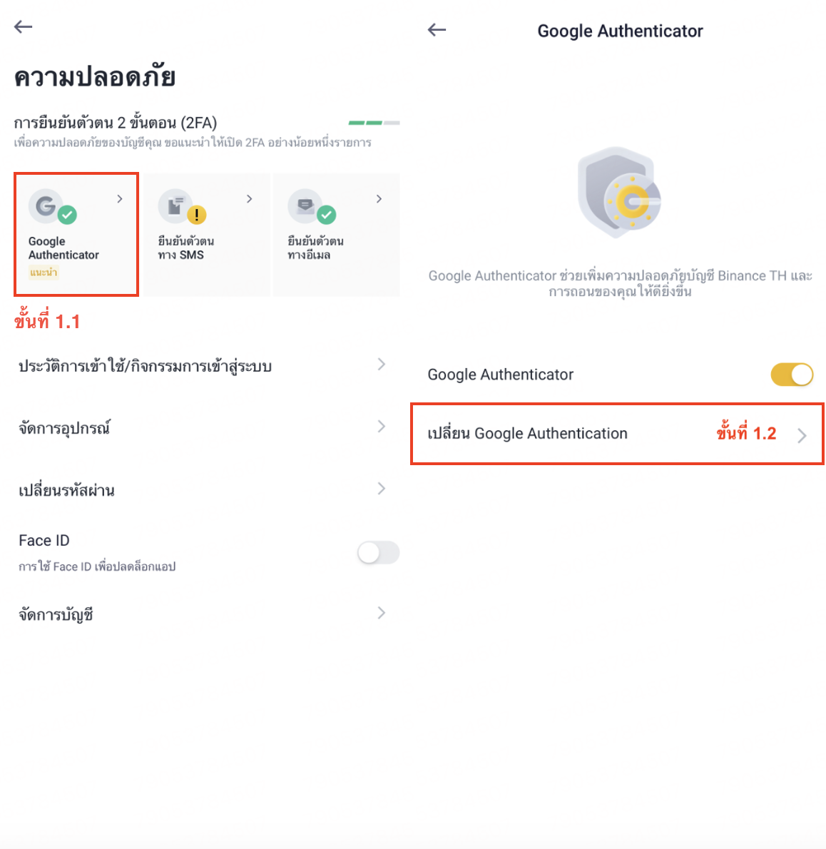 1. เลือก [Google Authenticator] > [เปลี่ยน Google Authentication]