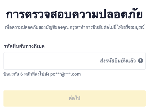 5. ป้อนรหัสยืนยันในอีเมลหรือหมายเลขโทรศัพท์ที่คุณป้อนในขั้นตอนก่อนหน้า จากนั้นให้คลิก [ต่อไป]