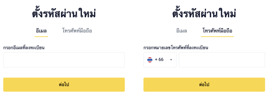 หากบัญชีของคุณได้ทำการลงทะเบียนด้วยอีเมลและคุณได้เปิดการใช้งาน SMS 2FA คุณสามารถรีเซ็ตรหัสผ่านของคุณผ่านหมายเลขโทรศัพท์ของคุณได้