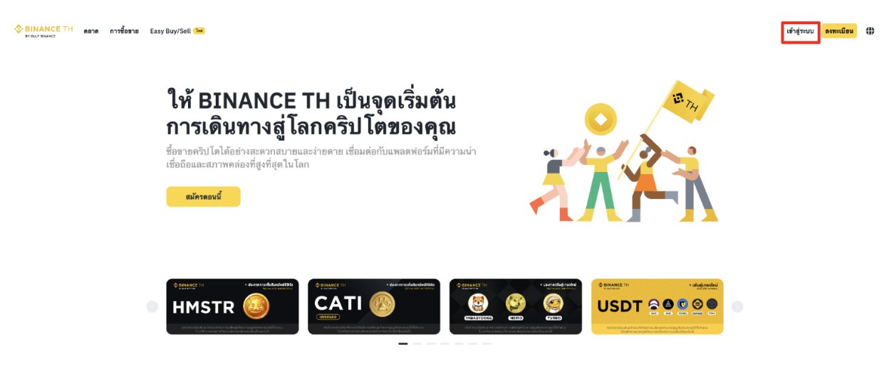 1. ไปที่ Binance TH และ คลิก [เข้าสู่ระบบ].