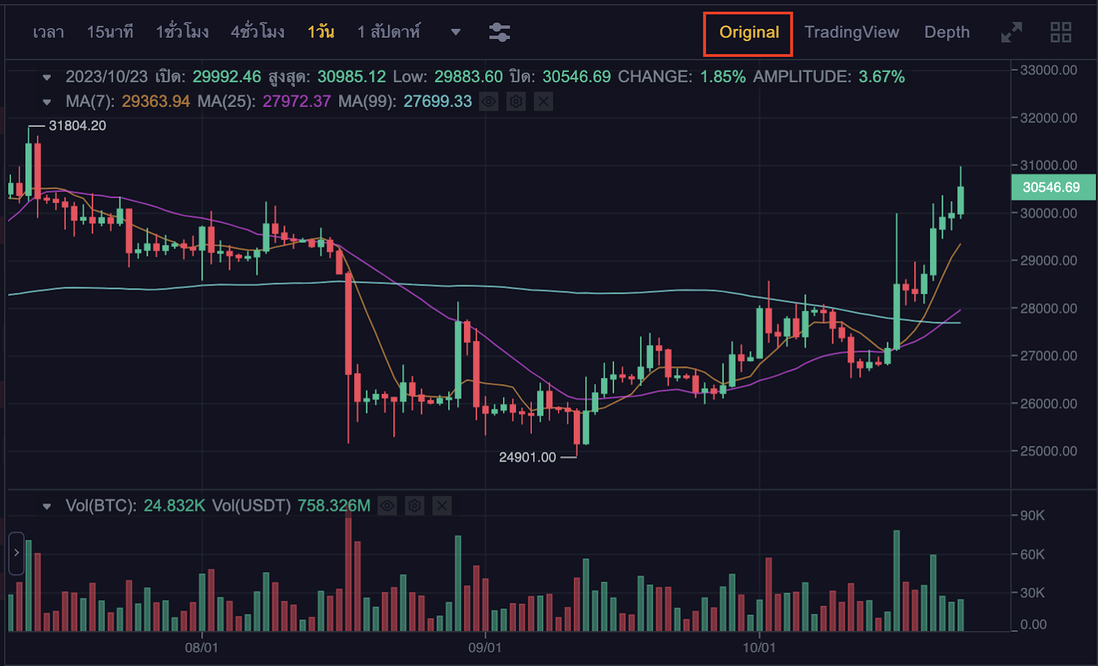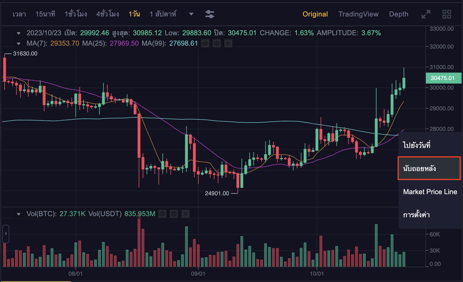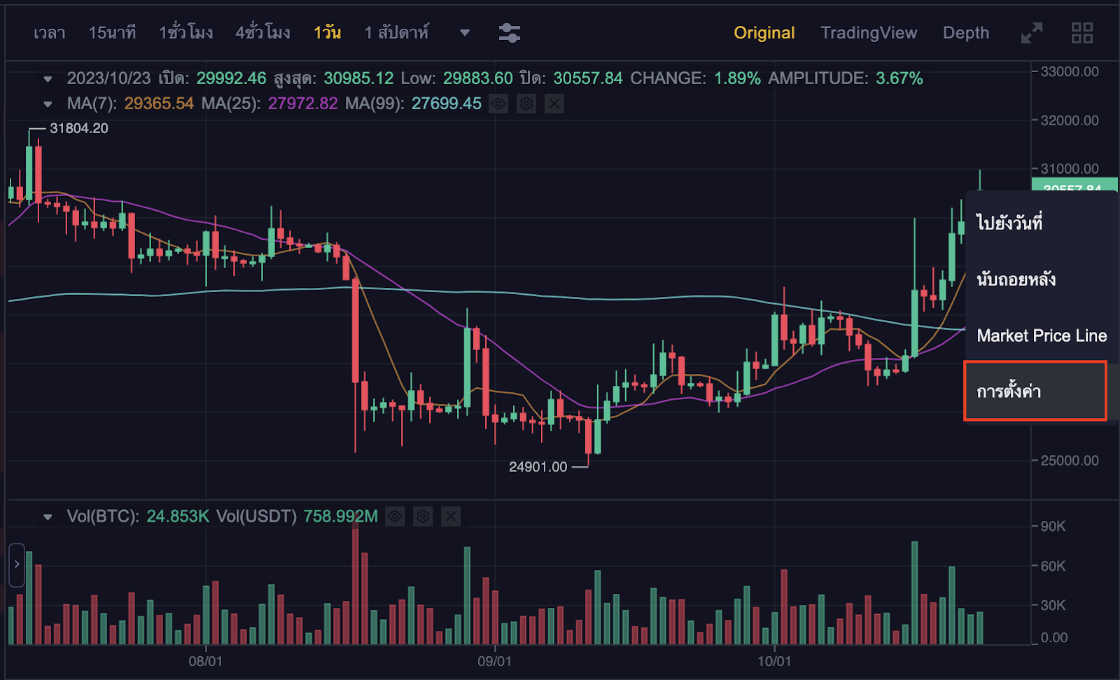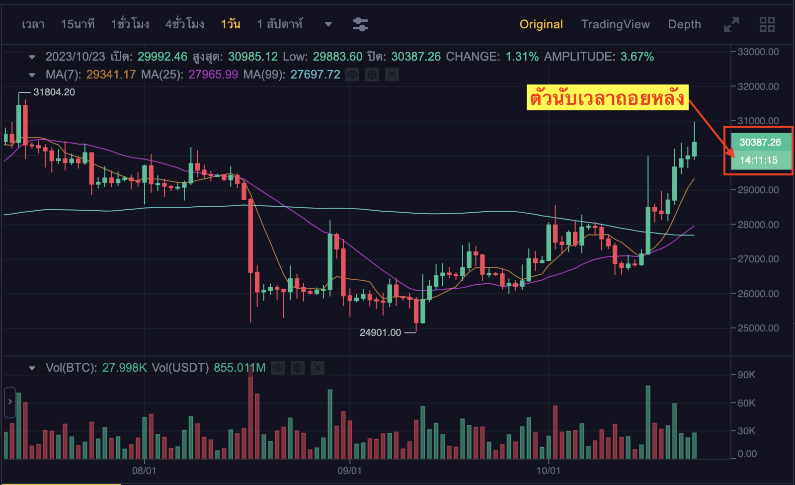 คุณสามารถแสดงตัวนับถอยหลังของคุณเพื่อตรวจสอบเวลาที่เหลืออยู่ก่อนที่แท่งเทียนปัจจุบันจะปิด มาดูวิธีเปิดใช้งานบนเว็บไซต์ Binance TH กัน