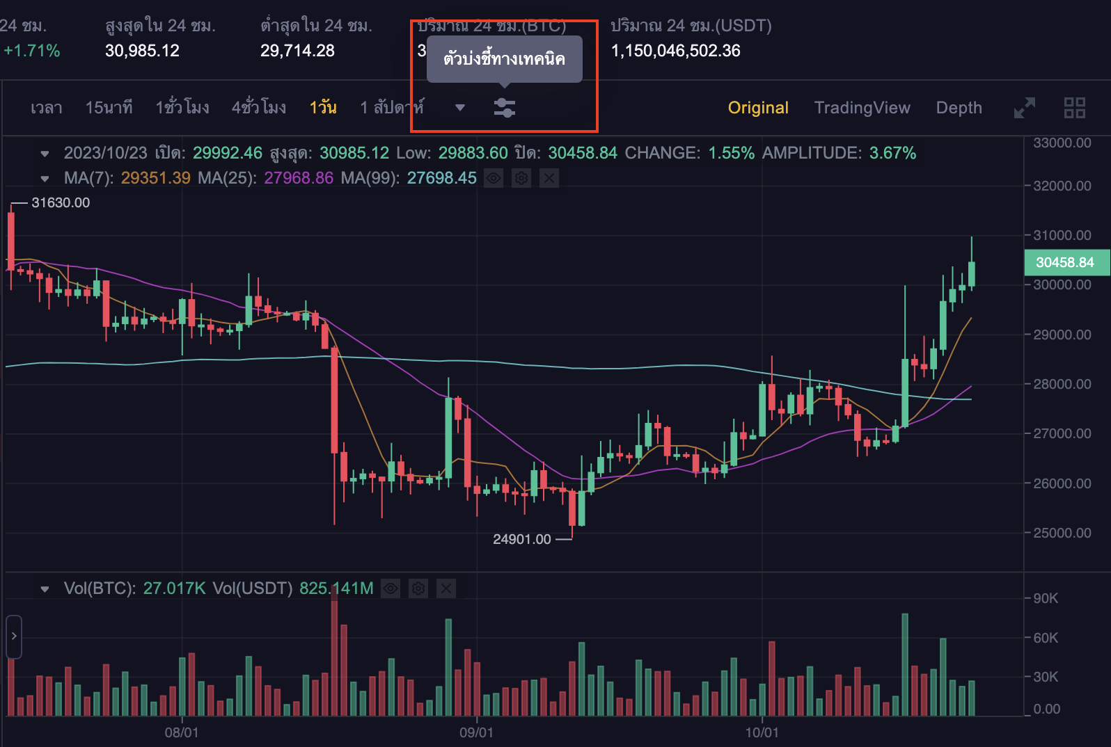 1. ในมุมมอง [Original] ให้คลิกที่ไอคอน [ตัวบ่งชี้ทางเทคนิค]