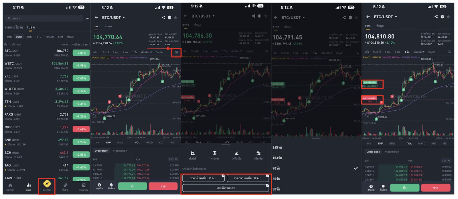 ราคาซื้อ/ขายเฉลี่ยของคู่เทรดจะแสดงบนแอปพลิเคชัน BINANCE TH เท่านั้น โดยสามารถตั้งค่าได้ผ่านแอปพลิเคชัน ตามขั้นตอนดังต่อไปนี้: