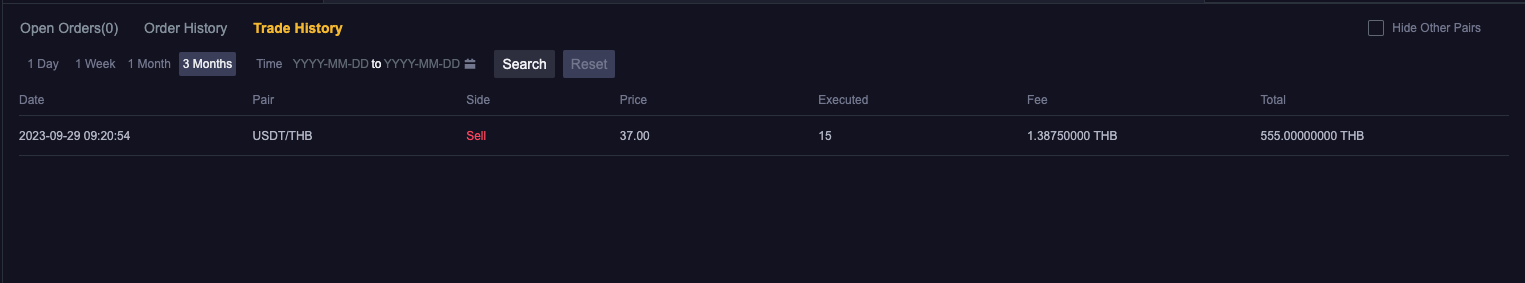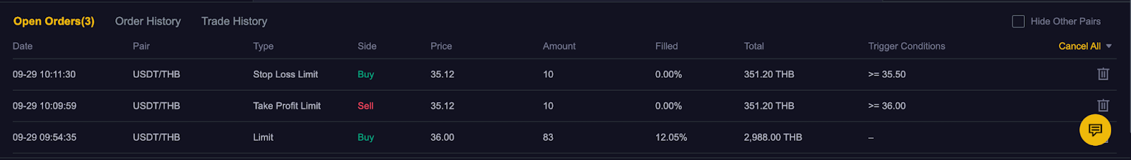 คุณสามารถตรวจสอบคำสั่งซื้อที่กรอกไว้ได้ที่ [ประวัติการเทรด].