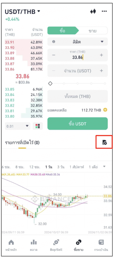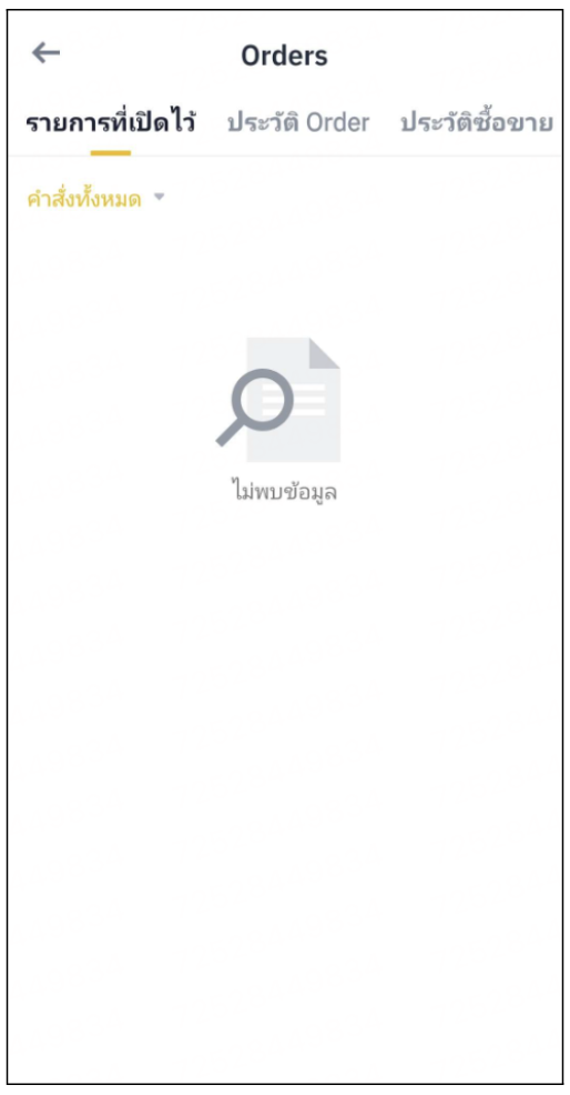 ไปที่ [ซื้อขาย] คุณสามารถตรวจสอบคำสั่งซื้อที่เปิดอยู่ของคุณได้ในแท็บ [คำสั่งซื้อที่เปิดอยู่] และคำสั่งซื้อที่คุณกรอกไว้ภายใต้ [ประวัติการซื้อขาย]