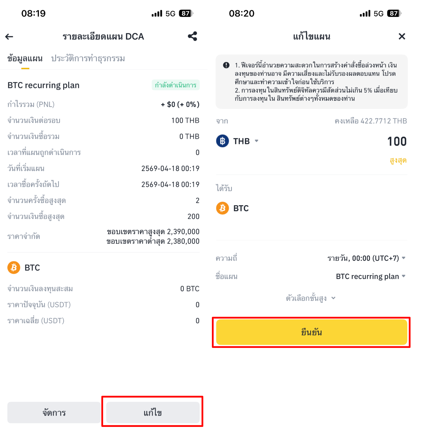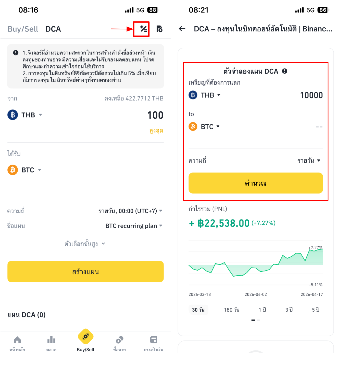 วิธีสร้างแผน DCA บนแอป Binance TH