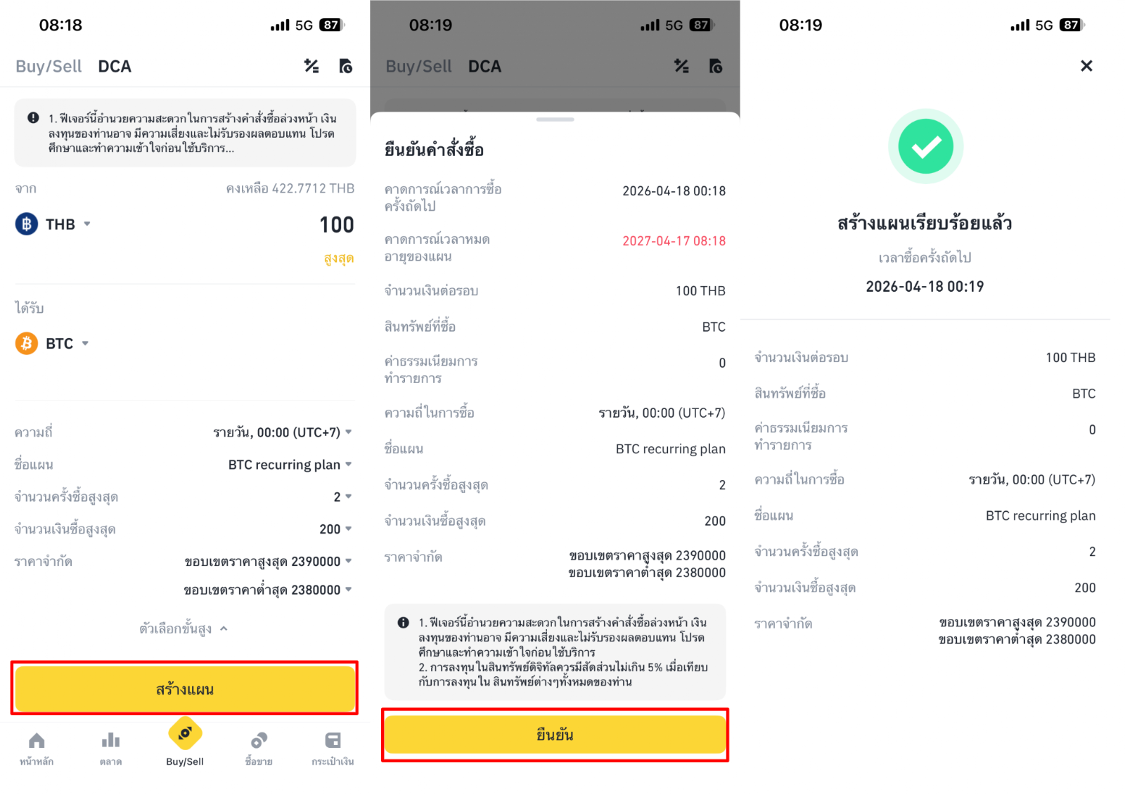 เมื่อสร้างแผนเรียบร้อยแล้ว Binance TH จะดำเนินการซื้อให้อัตโนมัติตามรอบที่คุณตั้งไว้